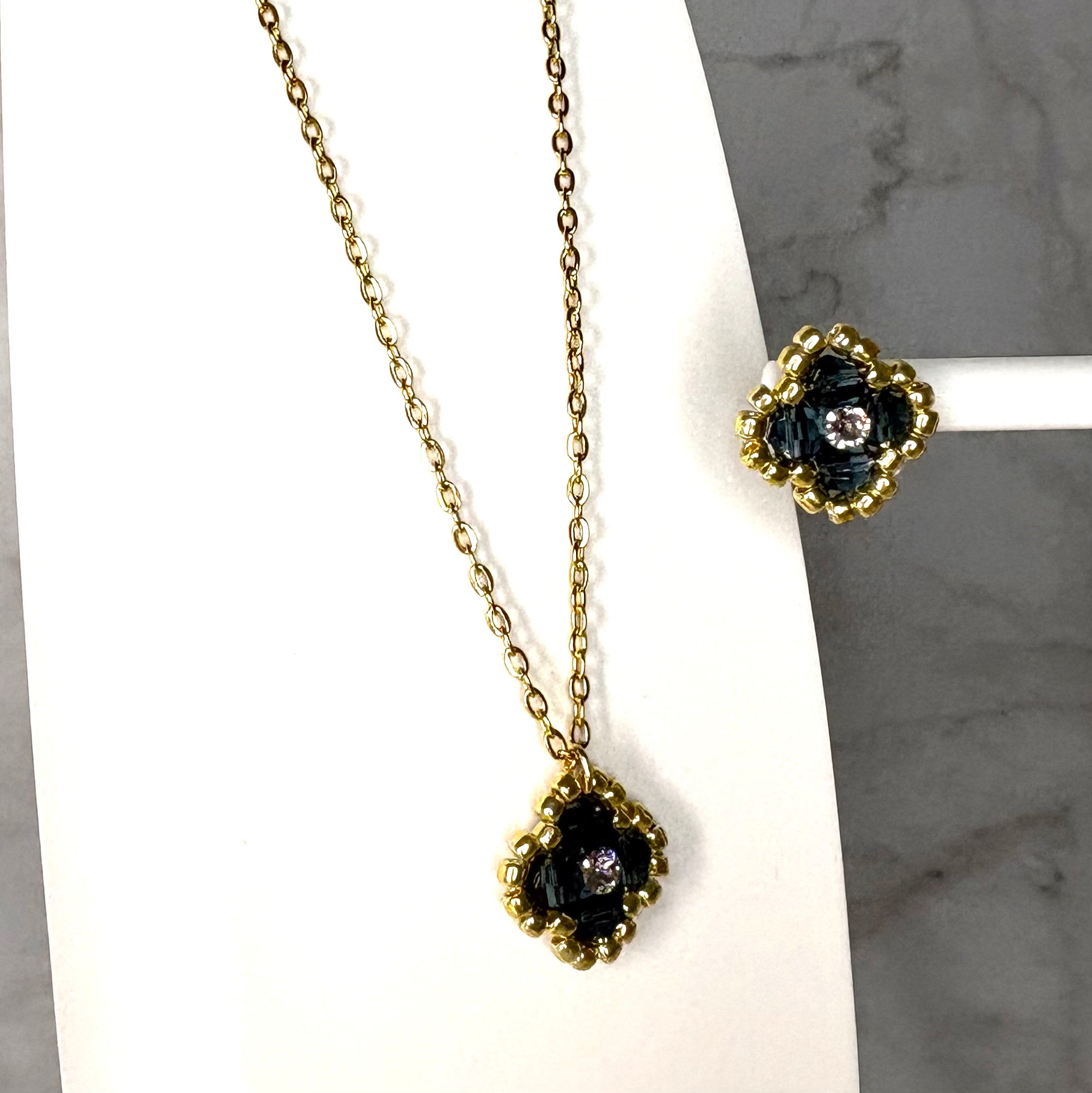 Zartes, aufeinander abgestimmtes Set mit einem zierlichen Kleeblattmotiv.
