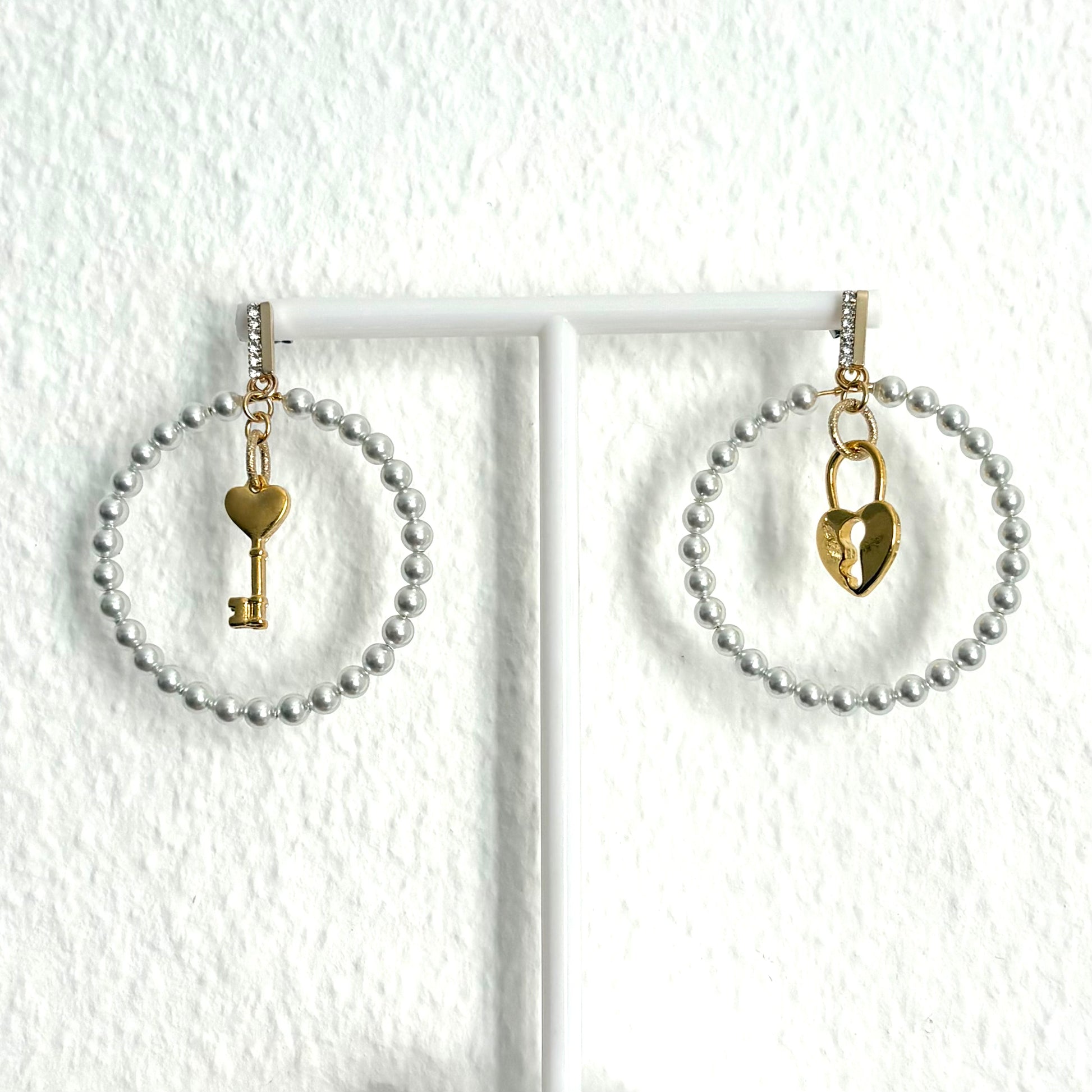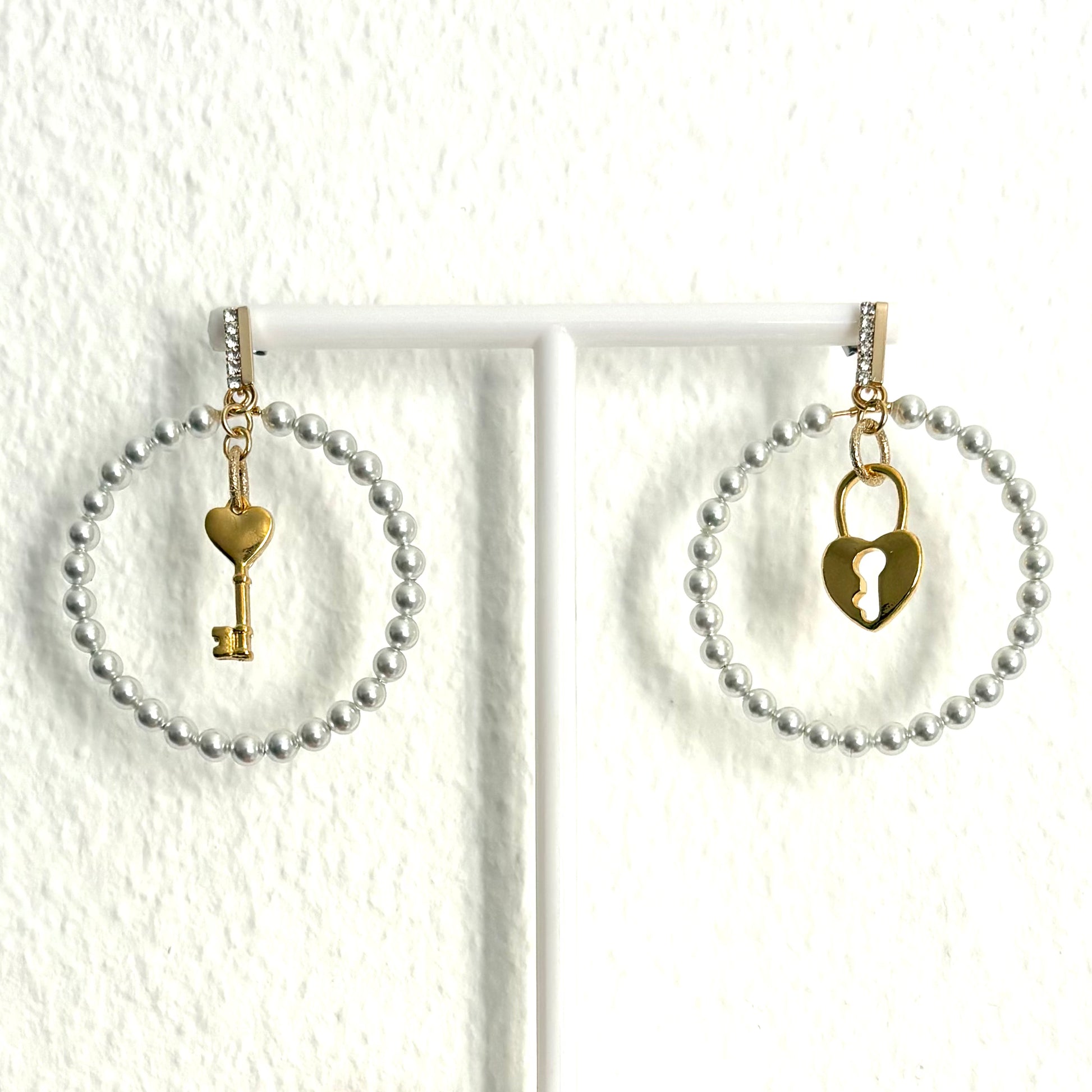 Elegante Perlencreolen mit einem markanten Vorhängeschloss-Anhänger.
