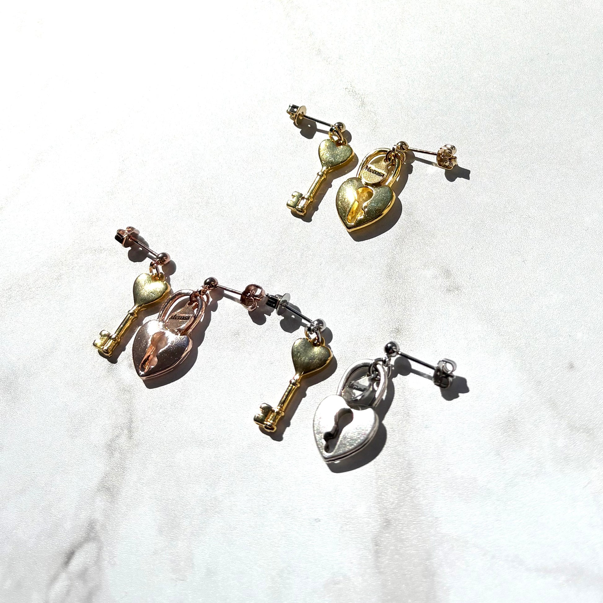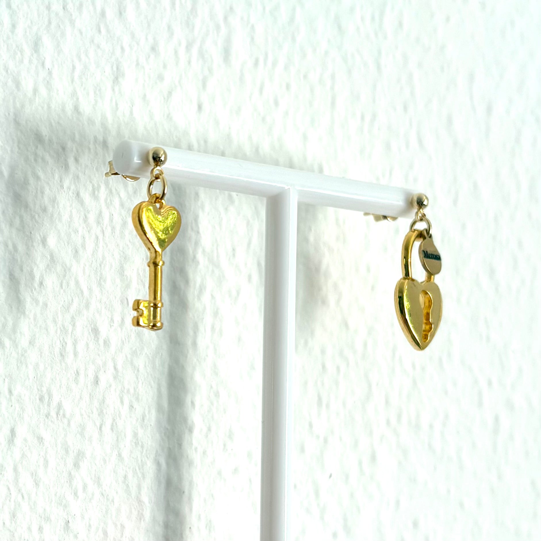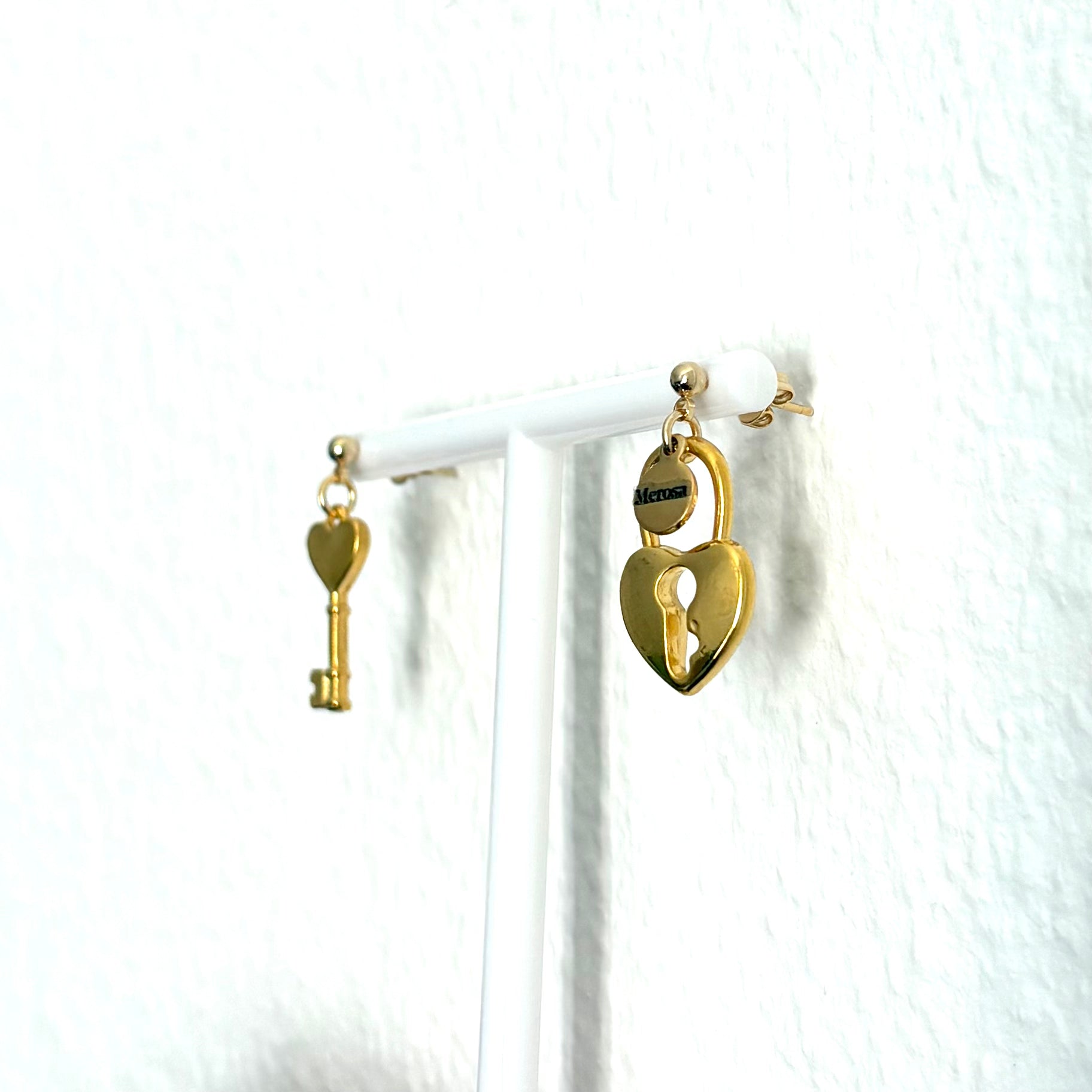 Ungleiche Ohrringe mit herzförmigem Schloss und Schlüssel