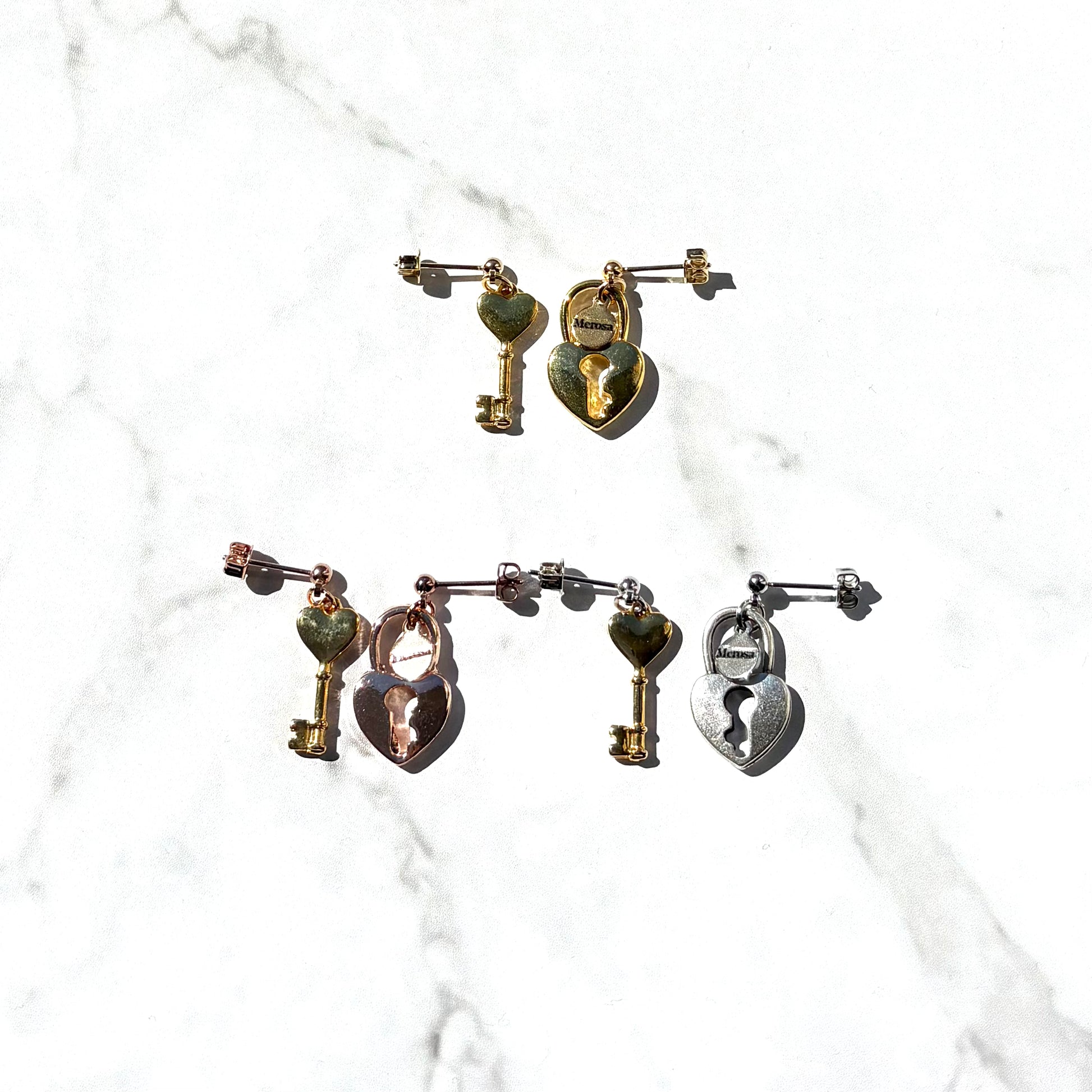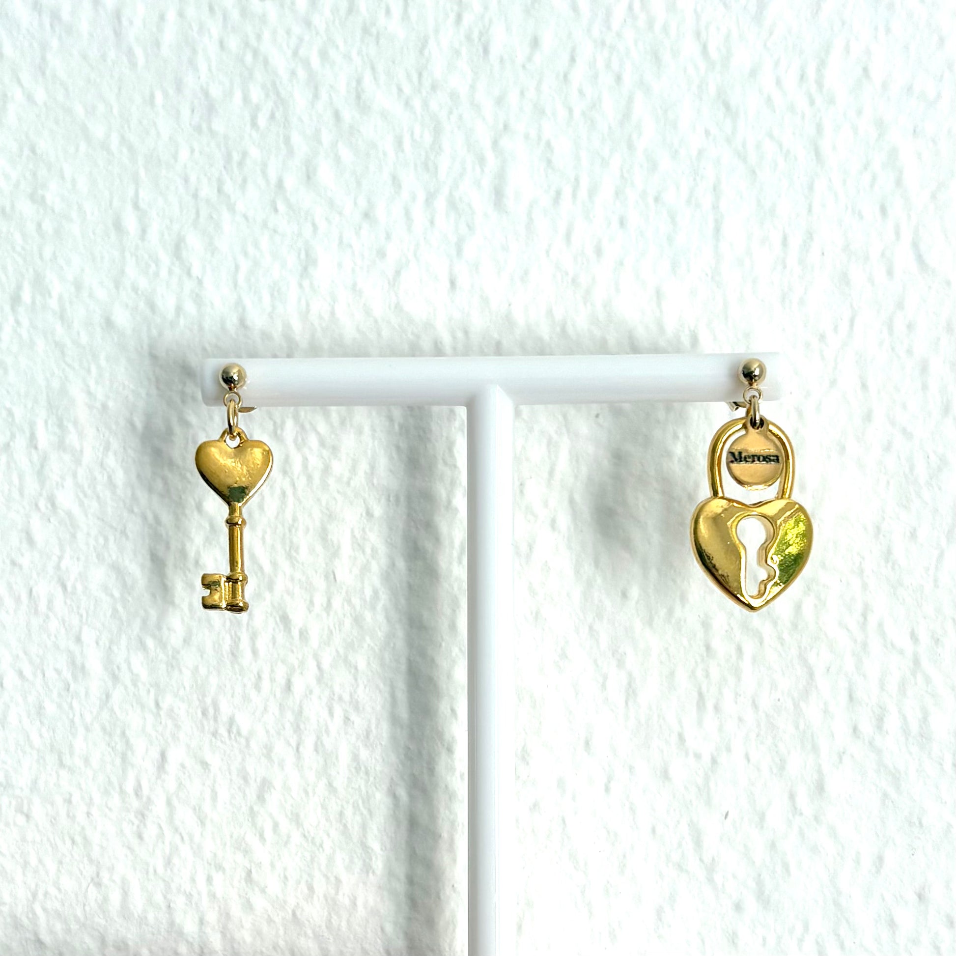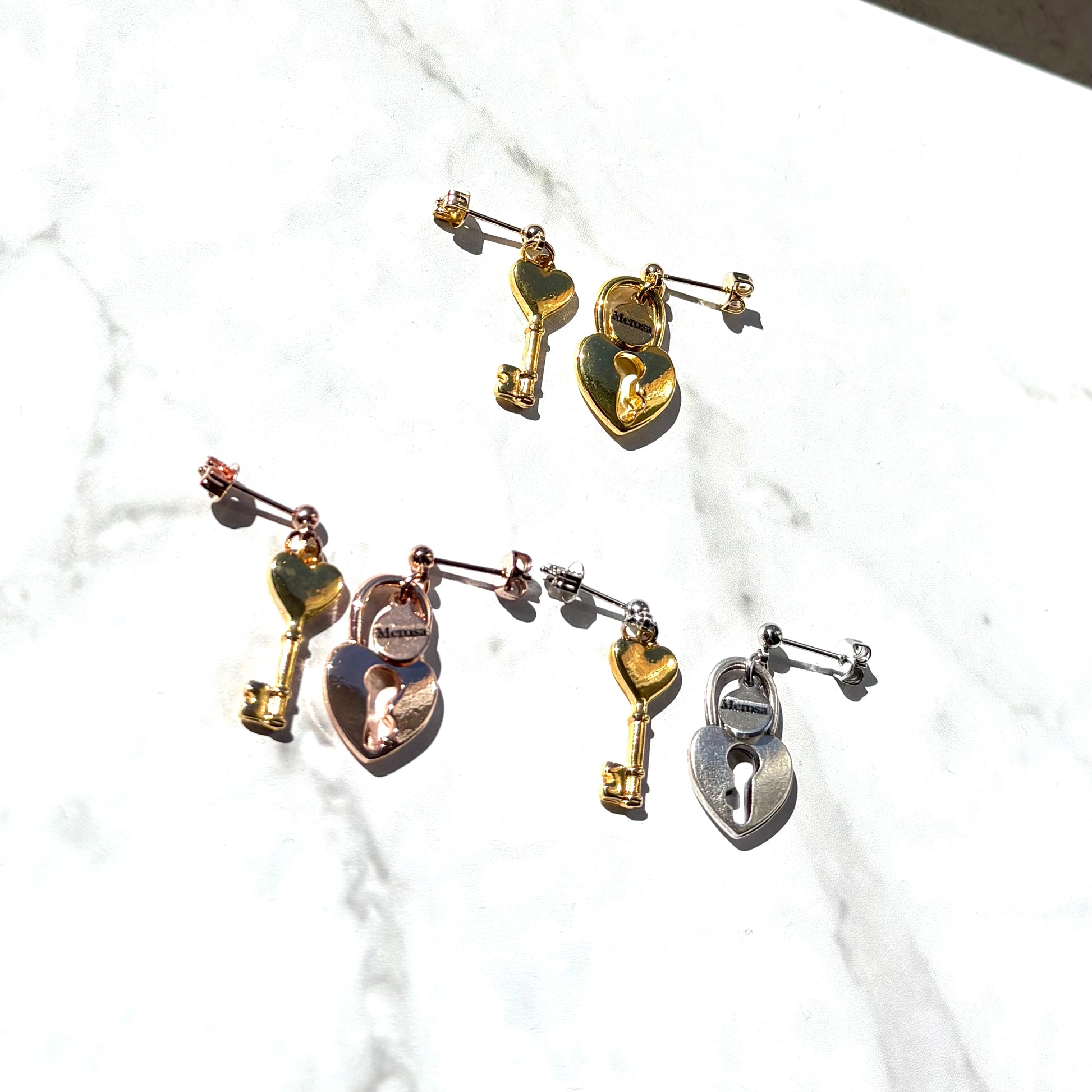 Ungleiche Ohrringe mit herzförmigem Schloss und Schlüssel